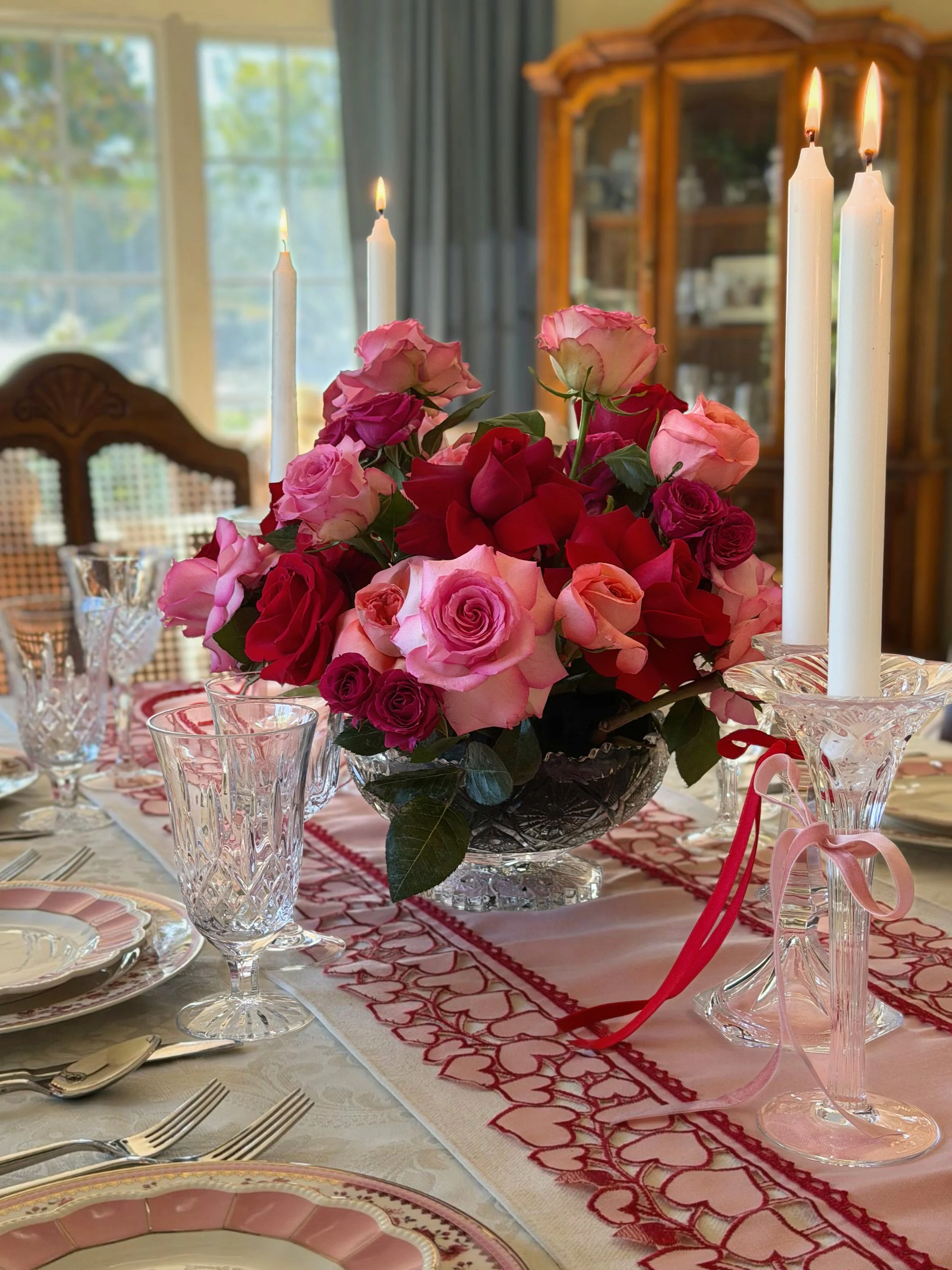 It feels elevated and personal — and the thrifted crystal makes it feel charming rather than fussy.