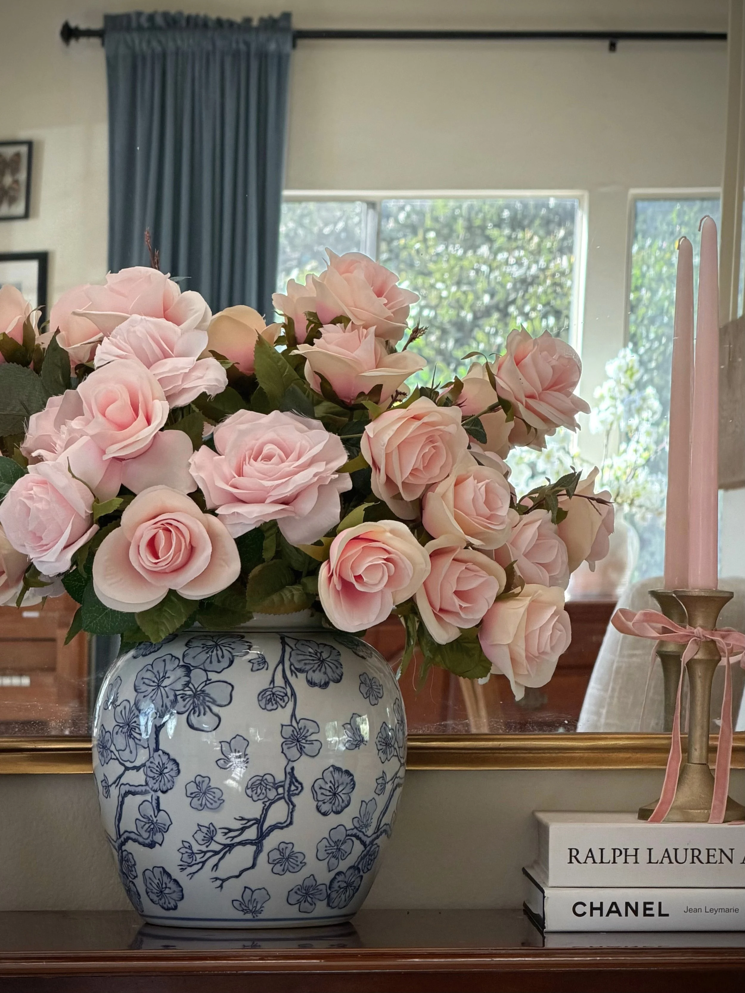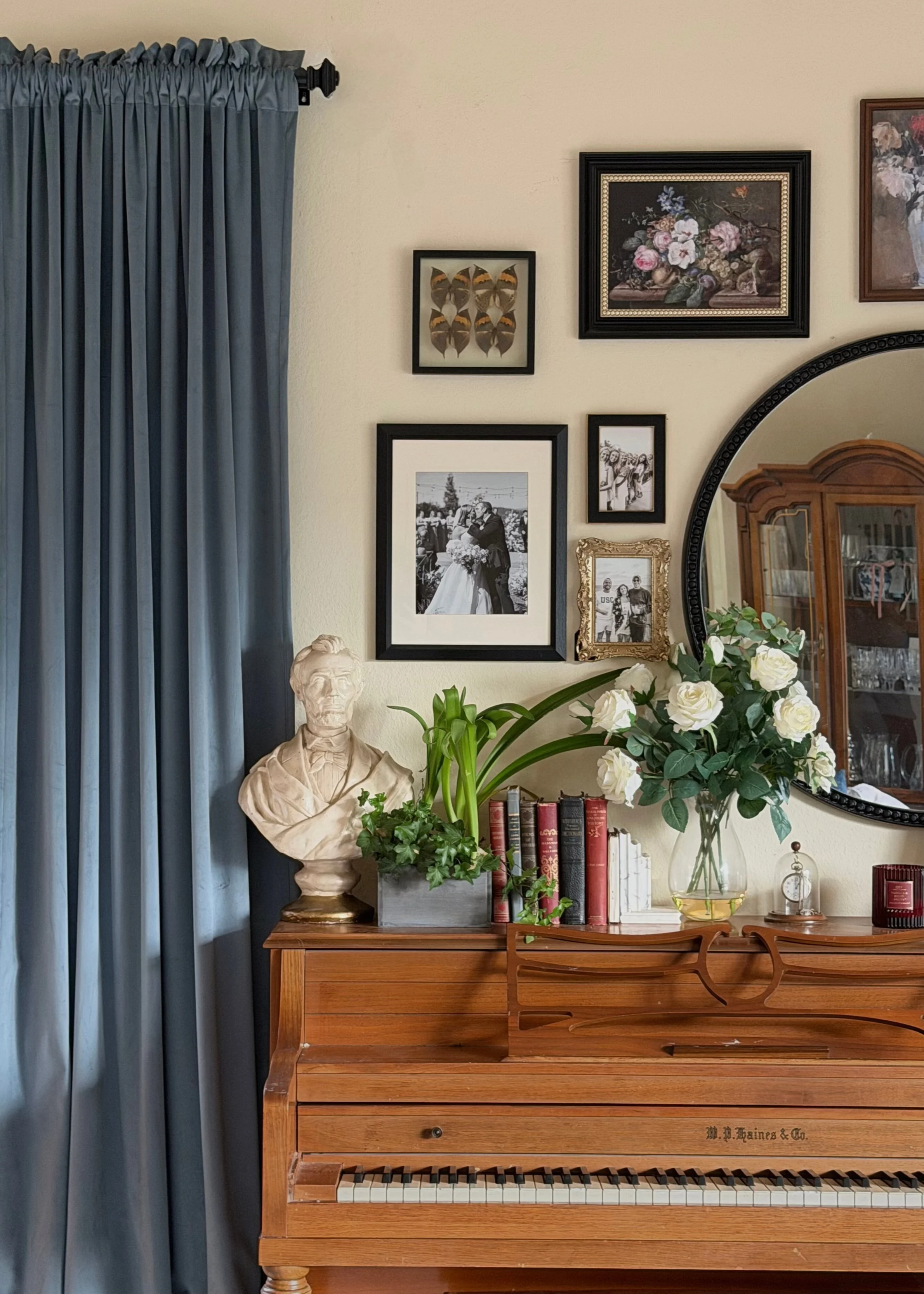 Blue curtains. Blue-and-white vases. Blue patterned bedding. Soft, dusty blues layered in rooms that were otherwise neutral and understated. Without meaning to, blue had quietly become the thread running through our home.